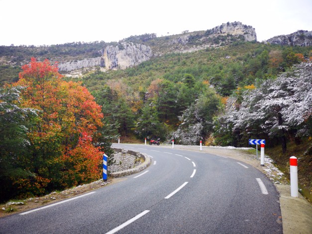But after breakfast we were riding again. First we took the road 311 down in the walley and then we turned north following the Dientenbach river. This road is very nice as the river runs deep in the walley but it’s not very long… and then we took the “Hochkönig Road” to east. This road was first climbing to Mühlbach am Hochkönig -skicenter & village and then going down with very nice sweeping corners! Then it was road 159 north following the Salzach river (and A10 Autobahn) and then Lammertal Straße to east towards Postalmstraße. This is a tollroad with 5€ payment. The speedlimit is 40 and it’s almost like going back to middle-age… The phone network wasn’t working and there was cows everywhere!